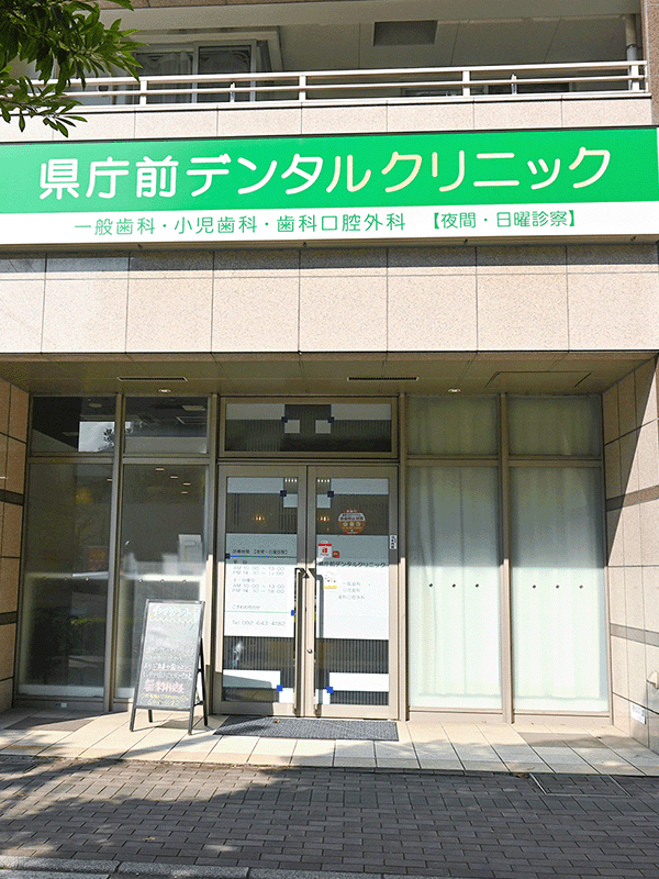 県庁前デンタルクリニックは、地下鉄箱崎線「千代県庁口」3番出口を出てすぐのマンション「ラクレイス県庁口」1階にある歯科医院です。博多や天神にもアクセスが良く、通勤・通学・お買い物の途中など、お気軽にお越しいただけます。